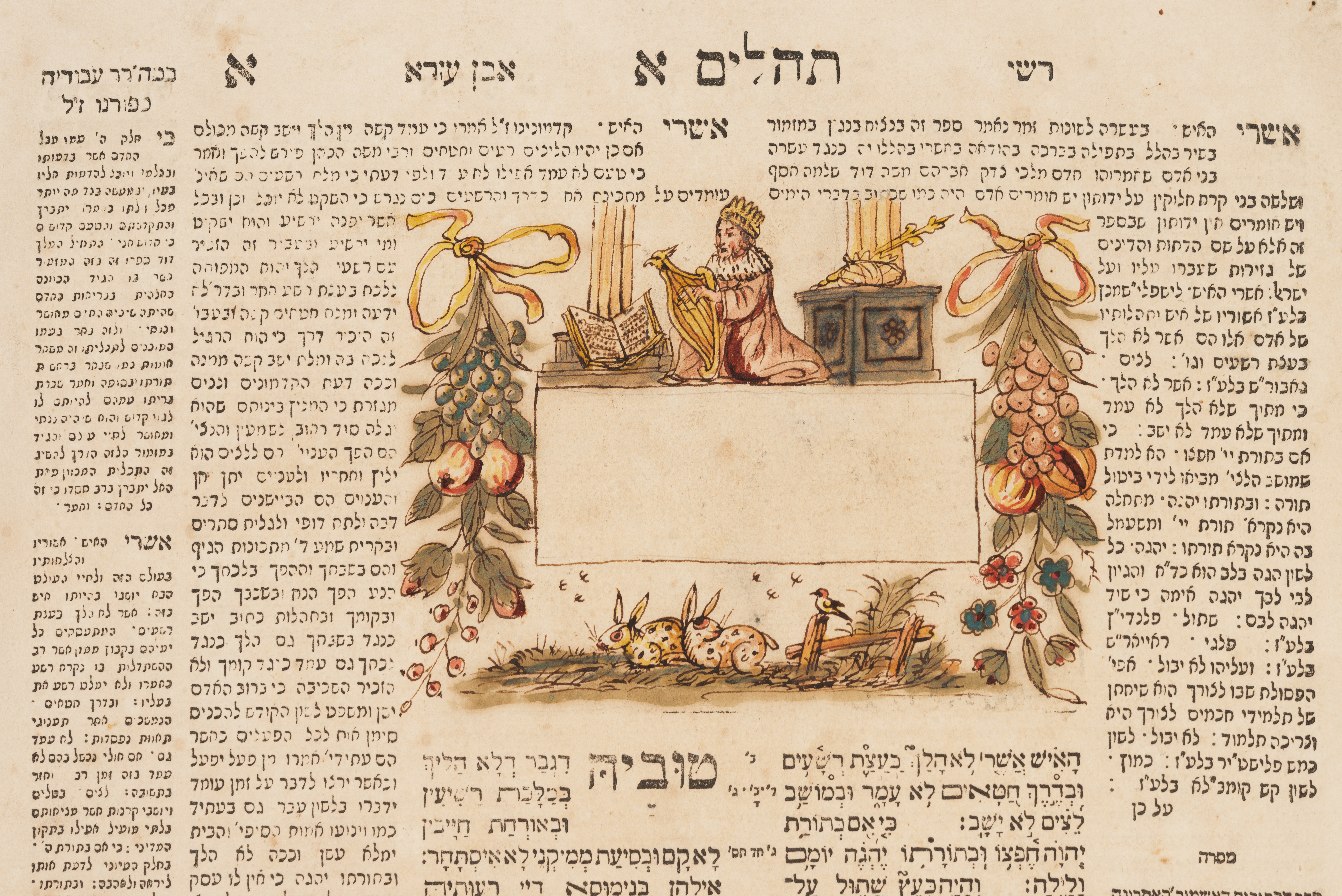 Opening page of Book of Tehillim, Amsterdam, 1724. Mendel Gottesman Library, on loan from Richard and Debra Parkoff, in honor of Abraham and Ruth Parkoff.